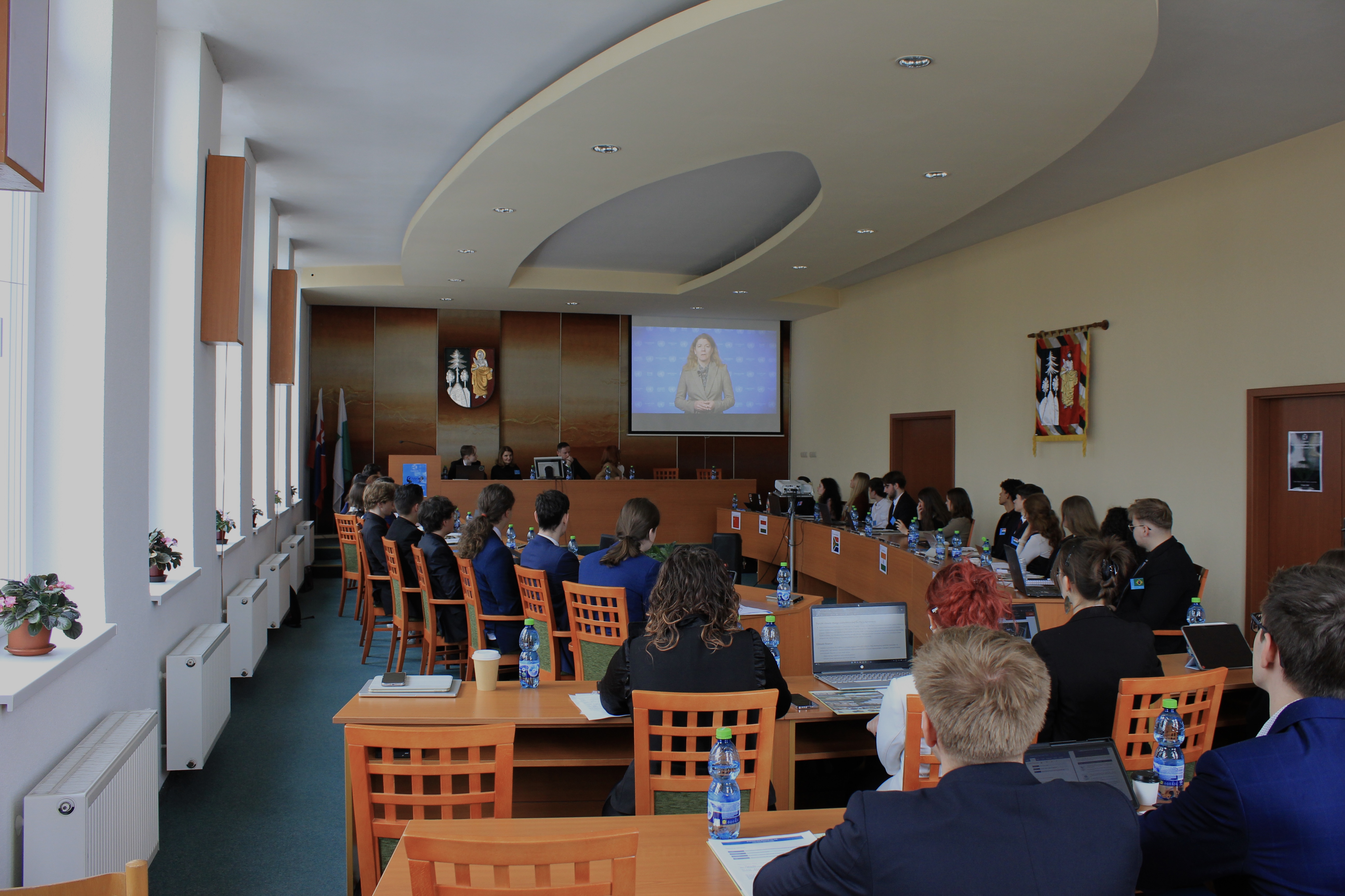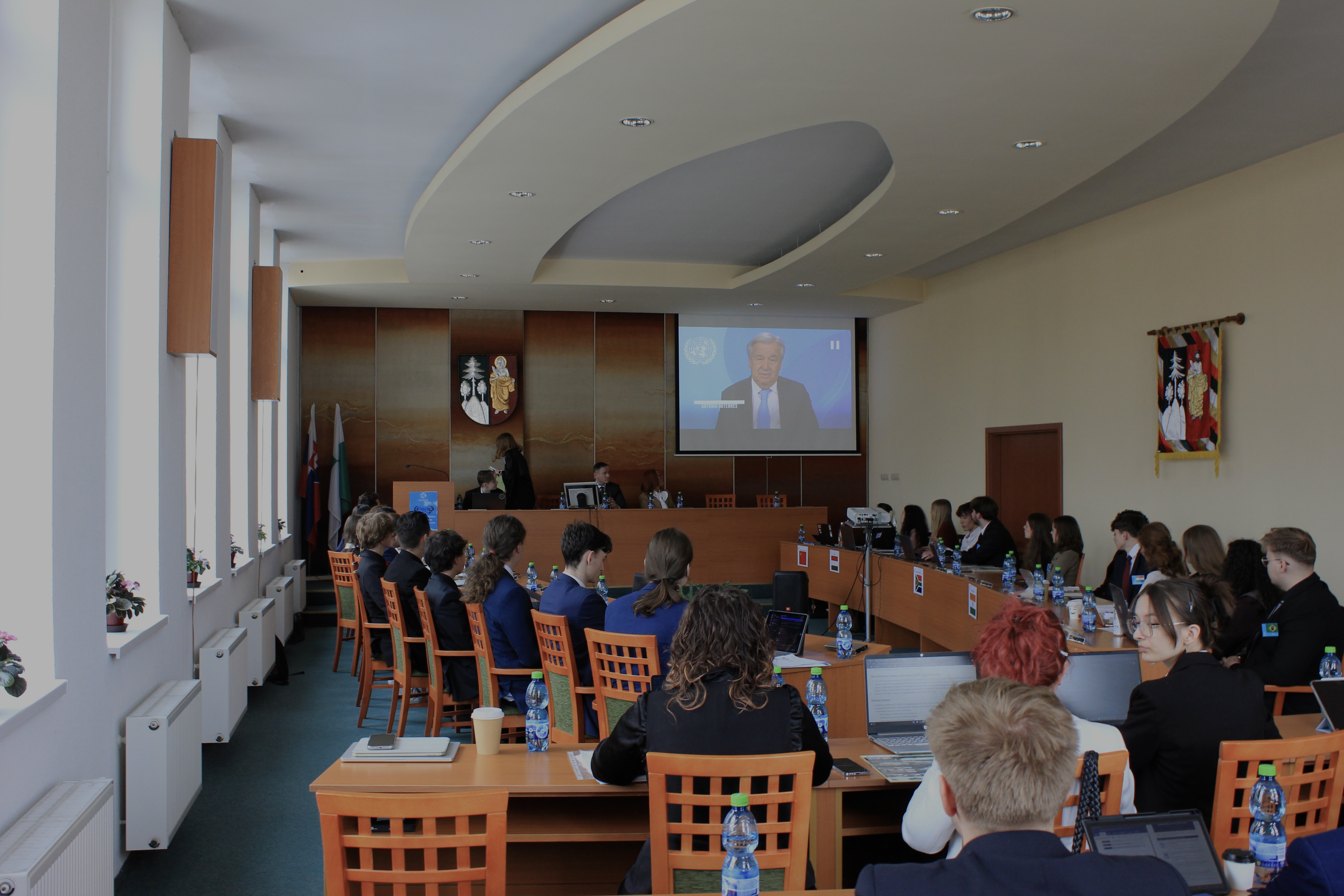 Slávnostné otvorenie konferencie bolo obohatené o video príhovory významných predstaviteľov Organizácie Spojených národov. Účastníkov privítala Sonja Wintersberger, Officer‑in‑Charge United Nations Information Service (UNIS) Vienna, ktorá vo svojom vystúpení vyzdvihla význam modelových konferencií OSN pre rozvoj kritického myslenia, jazykových zručností a občianskej zodpovednosti mladých ľudí. Silným motivačným momentom bolo aj video posolstvo generálneho tajomníka OSN Antónia Guterresa určené pre Model United Nations konferencie, v ktorom vyzval študentov k aktivite, solidarite a odvahe formovať lepšiu budúcnosť.